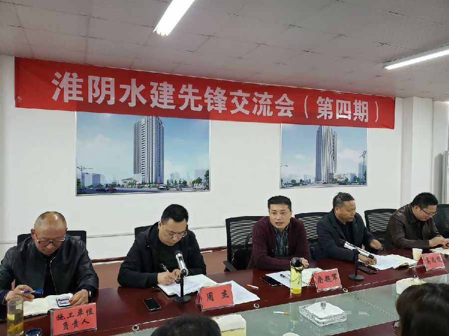 2019年4月29日下午,第四期“淮陰水建先鋒交流會(huì)”在通海大廈建設(shè)處成功舉辦。公司黨委班子成員、五個(gè)支部部分黨員、通海大廈臨時(shí)黨支部以及建設(shè)處全體成員、2019年入黨積極分子代表、通海大廈建設(shè)施工單位負(fù)責(zé)人參加了會(huì)議。